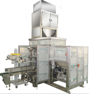 Dette er en fuldautomatisk big bag, der tager åbningsfyldningsforseglingsmaskine, designet til måling og påfyldning af forskellige slags granulatprodukter i forskellige størrelser af en pose med åben mund. Udbredt til pakning af frø, gødning, foder, korn og så videre. Hele maskinen med funktionen af automatisk posetagning, åbning, produktvejning, påfyldning af poseforsegling og output. Det er et godt valg for at spare mandskraft.