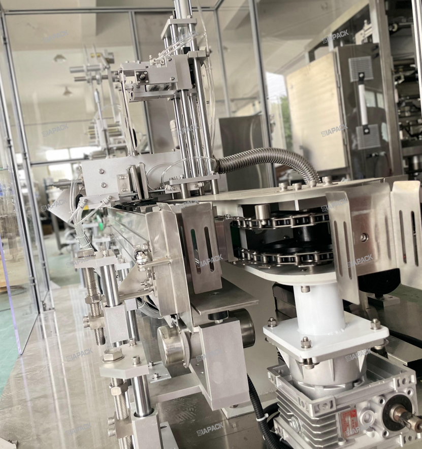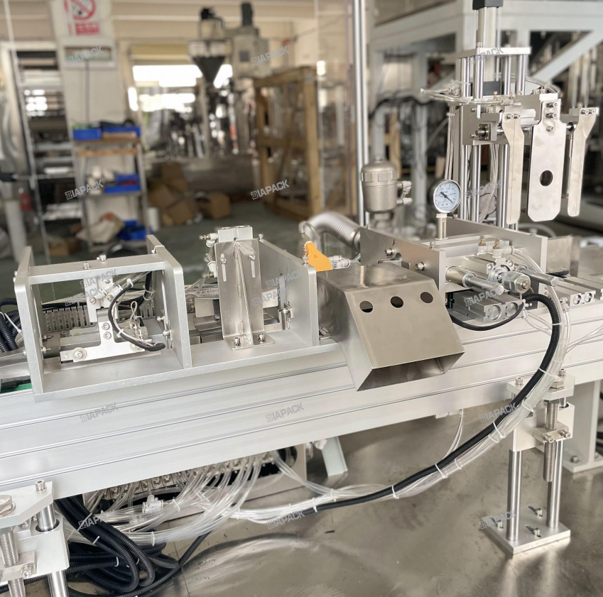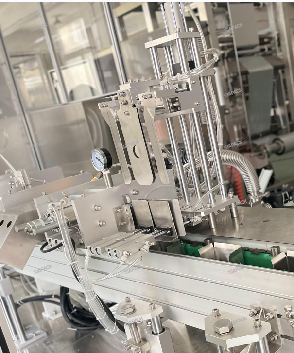 Denne maskine er specielt designet til at lave kileposen med topmærkning. Efter den fulde pose med produktfald på denne maskine. Denne maskine vil bære posen, gennemgå en gang mundfoldning af posen og derefter klæbe etiketten. Maskinrammen fremstillet af SUS304. PLC og berøringsskærm vedtager af Siemens-mærket. Og pneumatiske dele vedtager SMC-mærket. De vigtigste elektriske komponenter vedtager Omron og Schneider-mærket. Denne maskine arbejder med automatisk emballeringsmaskine for at nå den færdige posetopmærkning. Denne maskine kan automatisk nå funktionen af etiketten adskilt ,Etiketafsendelse .Etiketdetektor og etikettrykning.