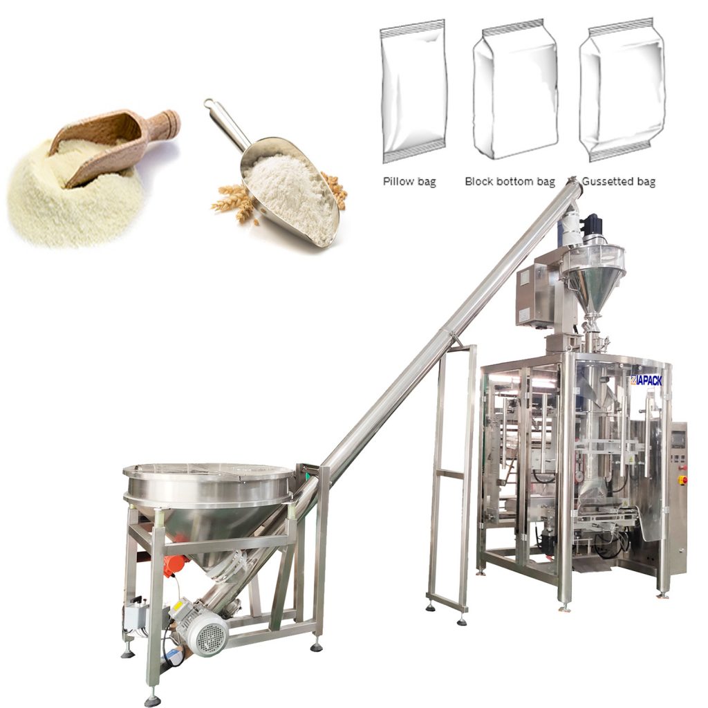 Denne maskinenhed inkluderer et sæt ZL1100 lodret posedannende påfyldningsforseglingsmaskine og et sæt ZL2000 sneglmålemaskine. Hele maskinenheden kan nå automatisk posefremstilling, produktvejning, produktpåfyldningsforsegling og datokodning. Udbredt brug til pakning af hvedemel, kaffe pulver og mælkepulver og andet pulverprodukt.