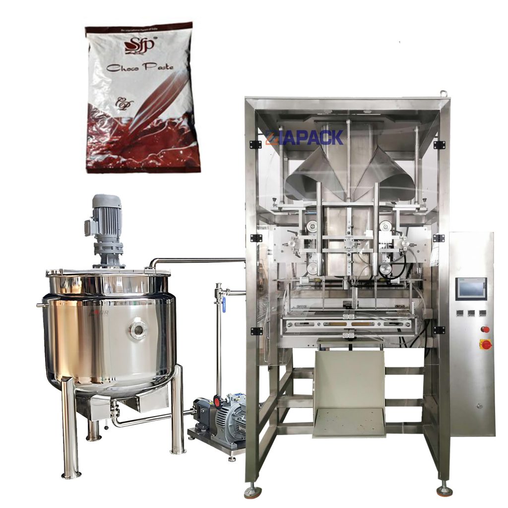 Denne maskinenhed er specielt designet til at pakke små sauceprodukter som ketch up, chilisauce, fiskemel og så videre. Maskinen kan automatisk fremstille posen, veje produktet, fylde produktet i posen og derefter udskrive transportbåndet. Hele maskinen styres af PLC og kan fungere på berøringsskærm. Nem at justere og vedligeholde.