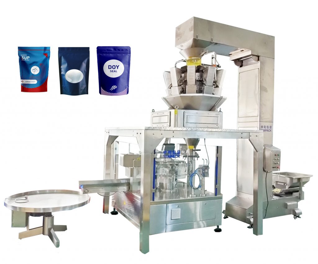 Forberedt posefyldnings- og tætningsmaskine, der består af 8 arbejdsstationer med effektivitet og stabilitet, understreger pakken af stand-up taske, lynlås taske, tud taske og forskellige præfabrikerede poser. Samarbejdet med forskellige doseringssystemer (kombinationsvægt / lineær vejer / snegle skrue / stempel fyldstof) og automatiske løftransportører, det anvendes bredt på granulater, væske og pulver.