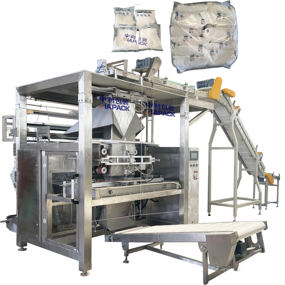 Denne maskine er velegnet til at pakke en lille pose ind i en stor pose. Maskinen kan automatisk lave posen og udfylde en lille pose og derefter forsegle den store pose. Denne maskine inklusive de bælgenheder: