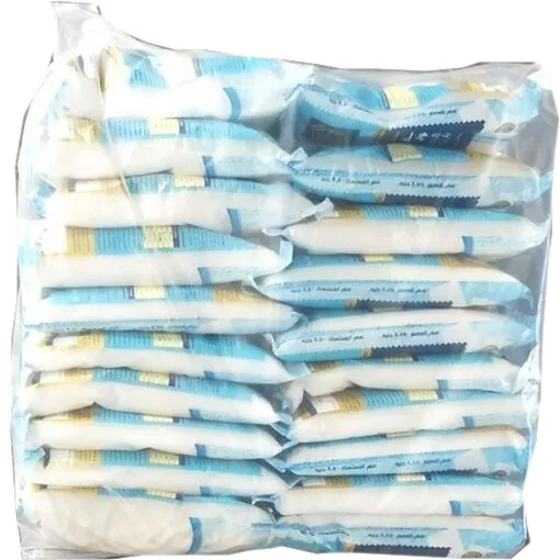 Vandret transportbånd til opsamling af de færdige poser → skråningsarrangement transportør vil gøre poserne flade før optælling → Accelerationsbåndstransportør vil gøre de tilstødende poser, der efterlader tilstrækkelig afstand til at tælle → tælle og arrangere maskinen vil arrangere de små poser som krav → de små indlæs i ZL1200 sækkemaskinen → ZL1200 sækkemaskineforsegling og skær big bagen → båndtransportøren vil tage big bag under ZL1200 maskinen.