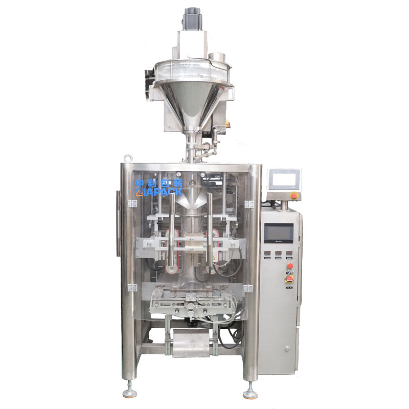 Denne maskine er specielt designet til at pakke pulverprodukt i en pudebundpose. Den bruges i vid udstrækning til pakning af hvedemel og kemisk pulver. Denne maskinenhed inkluderer et sæt ZL2000 sneglpåfyldningsmaskine et sæt ZL520 lodret posedannende påfyldningsmaskine. Et sæt Åben mund posetransportmaskine og kontrolsystem. Hele maskinen styres af PLC og betjenes med farveberøringsskærm.