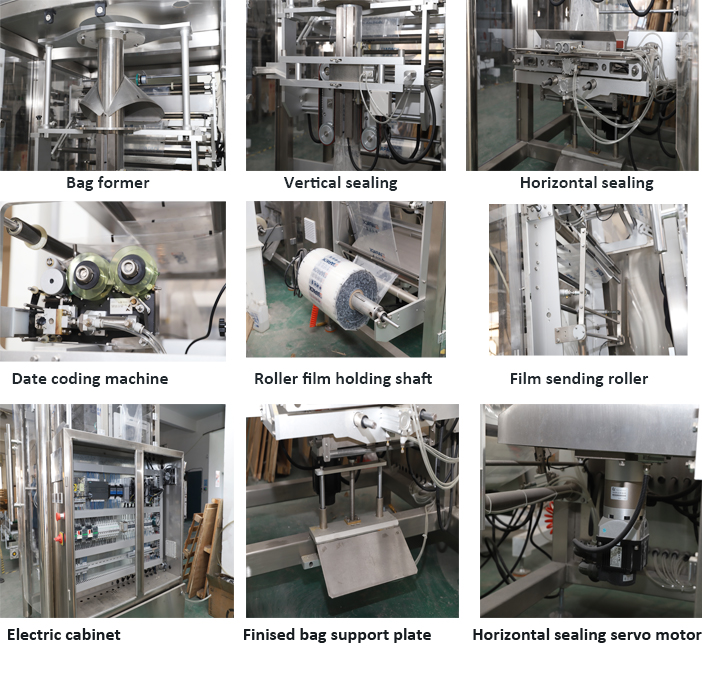 Denne maskinenhed inkluderer et sæt ZL720 lodret posedannende påfyldningsforseglingsmaskine og et sæt ZLC-5000 vejemaskine med fire spande, ét sæt DT3 lodret elevator og udgangstransportørmaskine. Hele maskinenheden kan nå automatisk posefremstilling, produktvejning, produktpåfyldning forsegling og datokodning. Udbredt til pakning af slat, vaskemiddelpulver, ris, bønner og andre granulerede produkter.